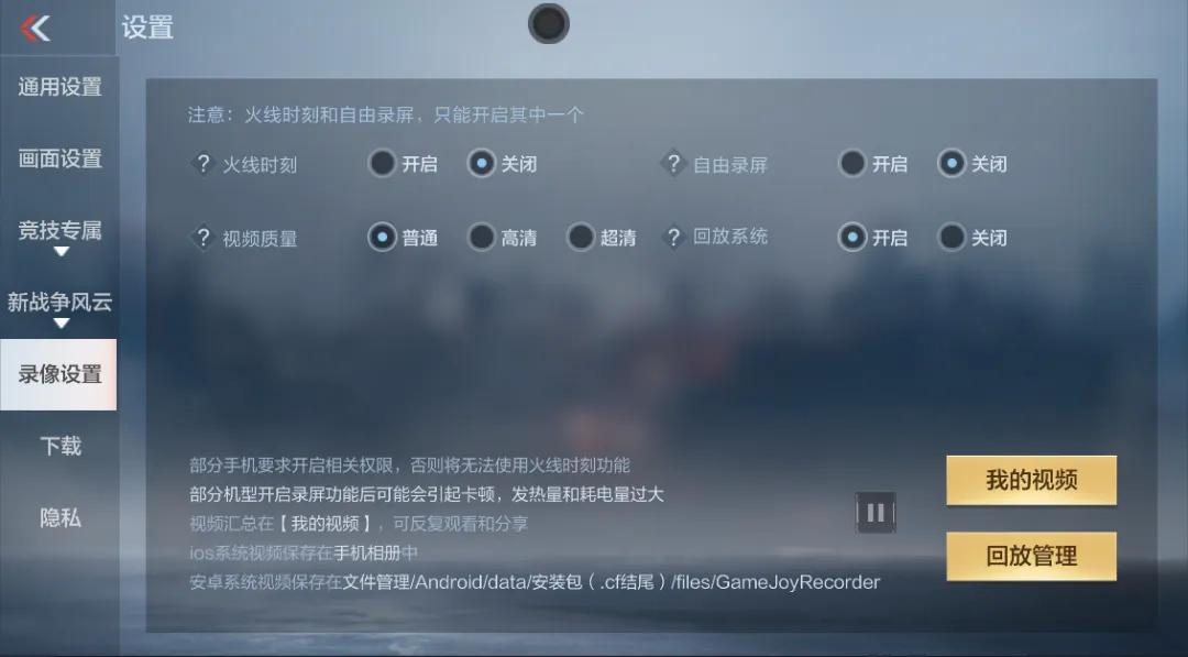 在设置-录像设置中,可以设置回放功能的开关,也可以在此处点击“回放管理”,查看已下载的回放。