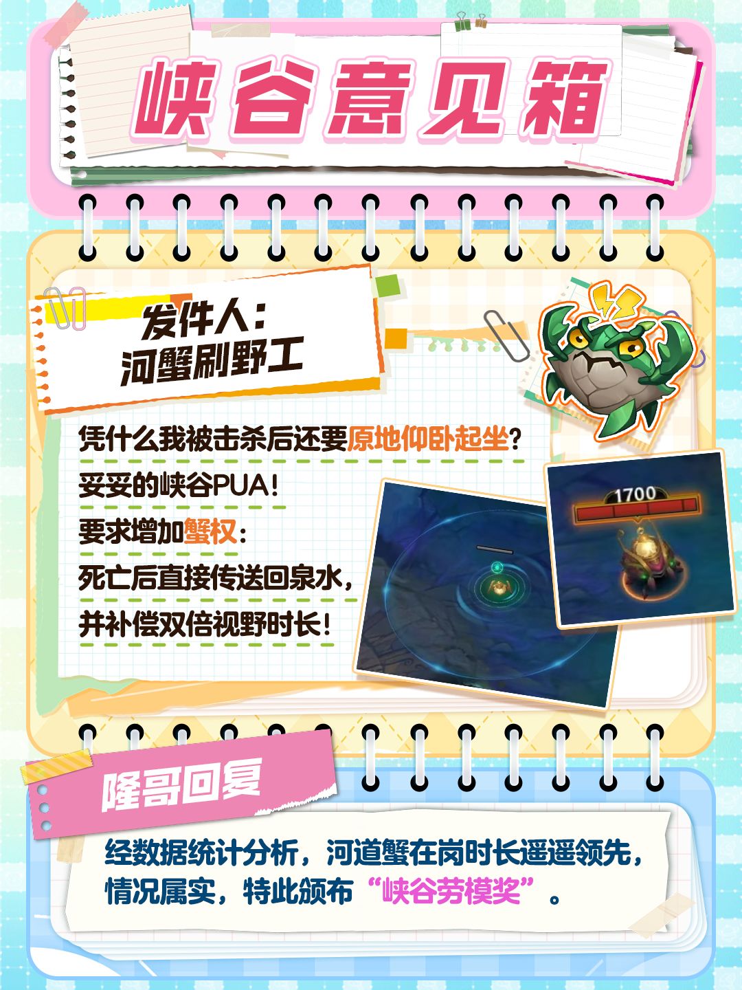 河道蟹梦想企划:表彰天选峡谷打工蟹