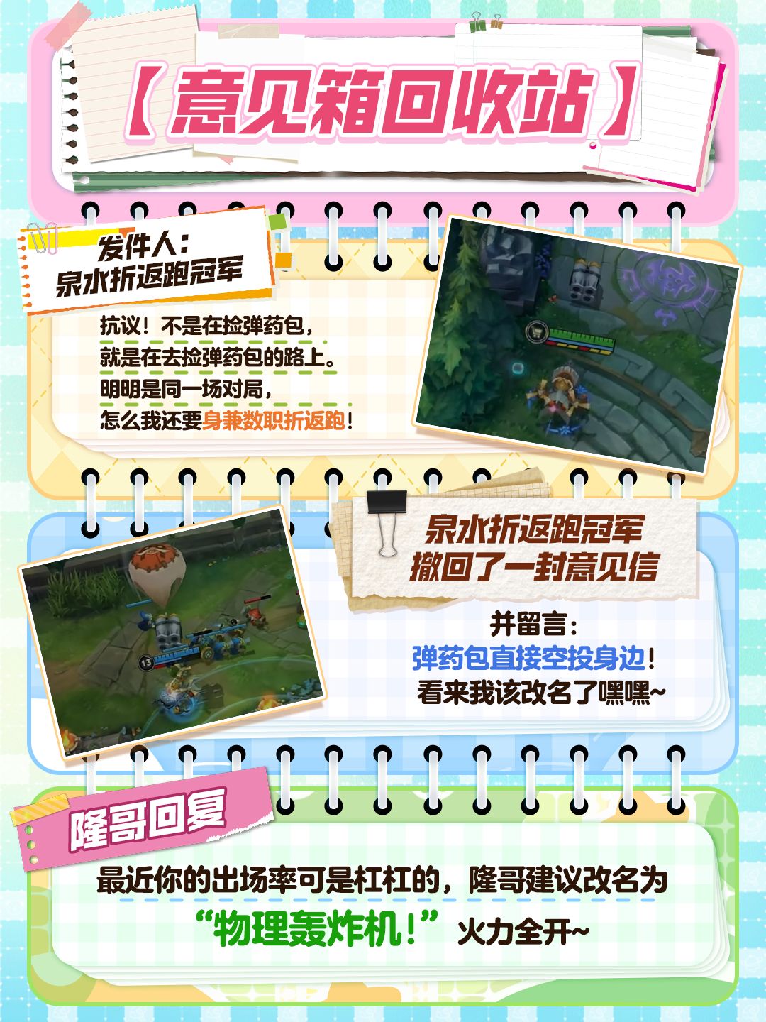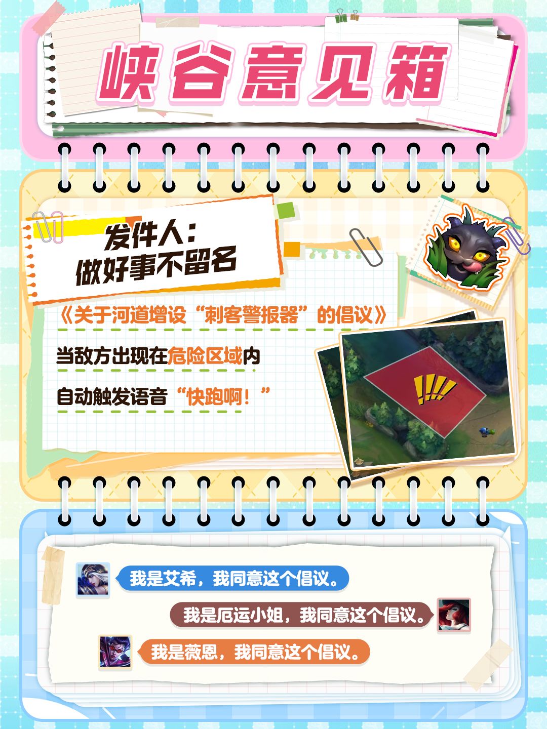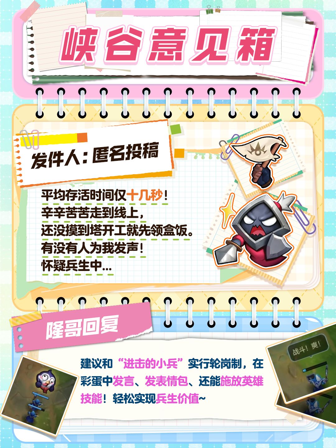 峡谷意见箱太精彩,根本看不过来?那就让峡谷心声来得更猛烈些吧!意见箱通道已开启,你最想替谁写意见信?快在评论区化身“发件人”激情开麦~