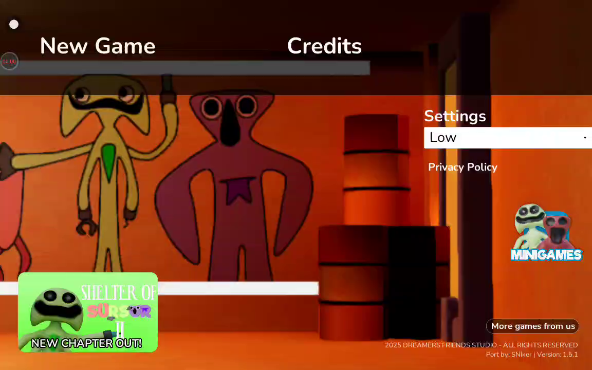 重新制作的 Sprunki 冒险!有趣的节拍,更艰巨的挑战,史诗般的节奏战斗! 准备好与 Sprunki Retake 一起进行全新的节奏冒险!受人喜爱的 Sprunki 的重制版带来了新鲜的节拍、更新的视觉效果和具有挑战性的游戏玩法,将您的音乐之旅提升到一个新的水平。加入男女朋友的行列,与标志性的对手对决,挑战重新设计的赛道和混合的挑战,让您时刻保持警惕! 凭借改进的音景和增强的视觉效果,Sprunki Retake 为您带来充满活力的身临其境的体验,让每一个节拍都栩栩如生。完善你的时机,掌握每条赛道,并证明你有能力以风格征服每场对决!