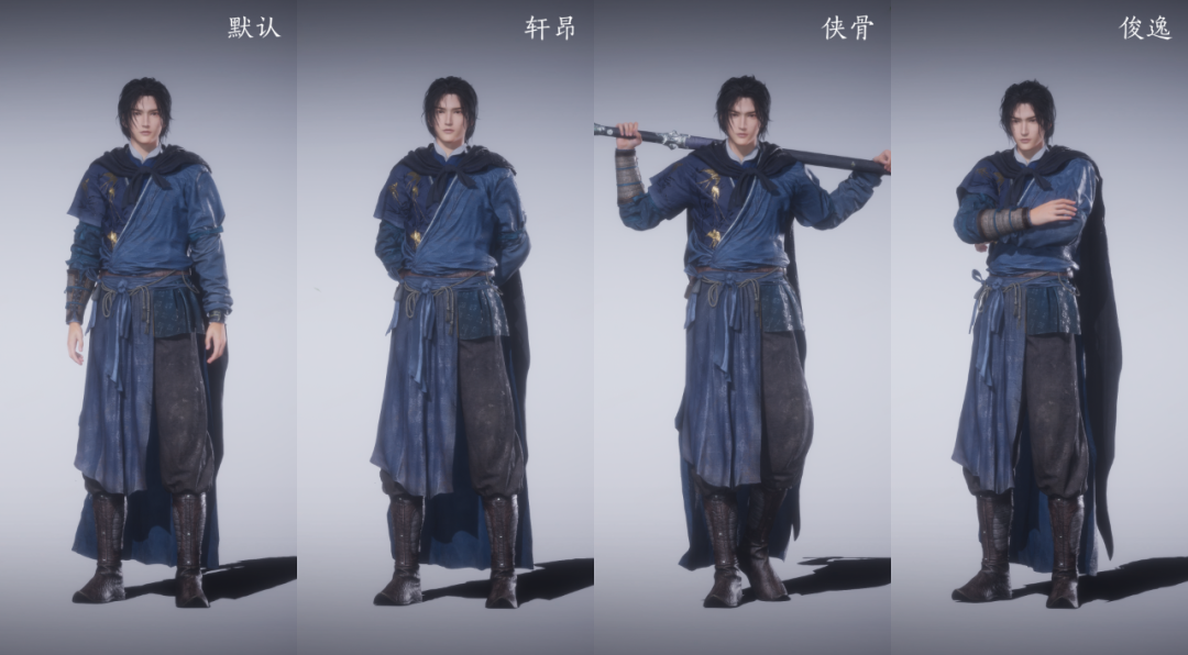 在3月21日更新后,大家就可以在【外观-周边-待机姿态】中对角色站姿进行设置,并将有「默认」、「轩昂」、「侠骨」、「俊逸」四种姿态可进行自由选择和切换。