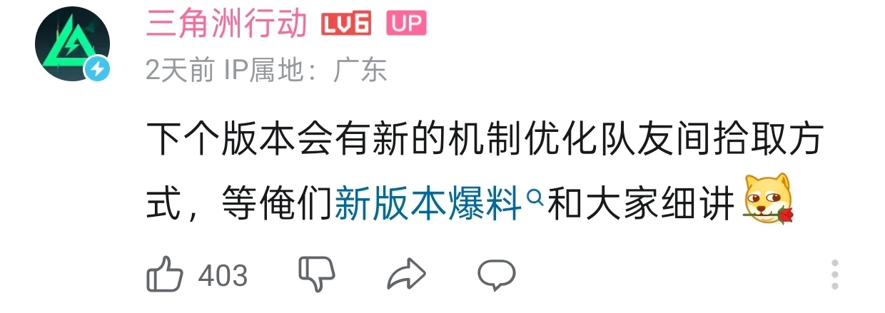 战场策划:下个版本会有新的机制优化队友间拾取方式,等俺们新版本爆料和大家细讲