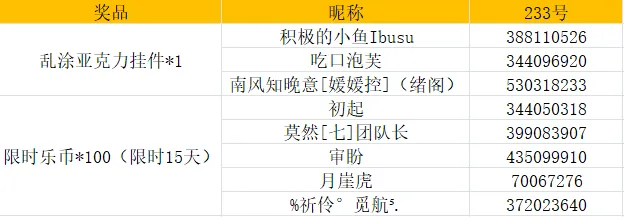 恭喜以下小伙伴获得奖励~获得实物奖励的小伙伴近期请留意乐园消息通知哦!届时会有【33乐园官方头衔】的小伙伴联系你~