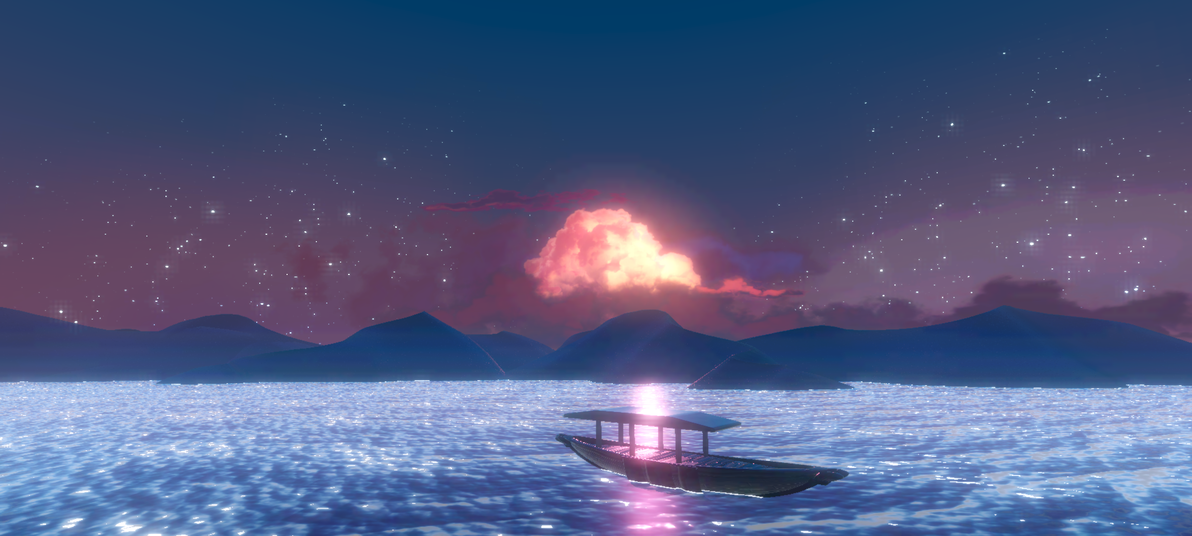 过去之后也是有一段自动运镜的,然后我们就可以开始美美的到处打卡啦,是在一个小岛上,四周都是打卡点~拍照会很方便哦,这里是旁边的景色,还有很古风的小船呢,天空也是超级的美丽💞