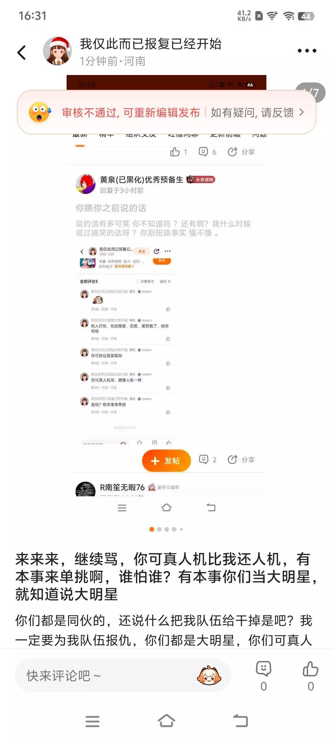 不和你们浪费时间,怎么又不通过?怎么回事?有人知道吗?你们都是同伙的,我一定要为我的队伍报仇