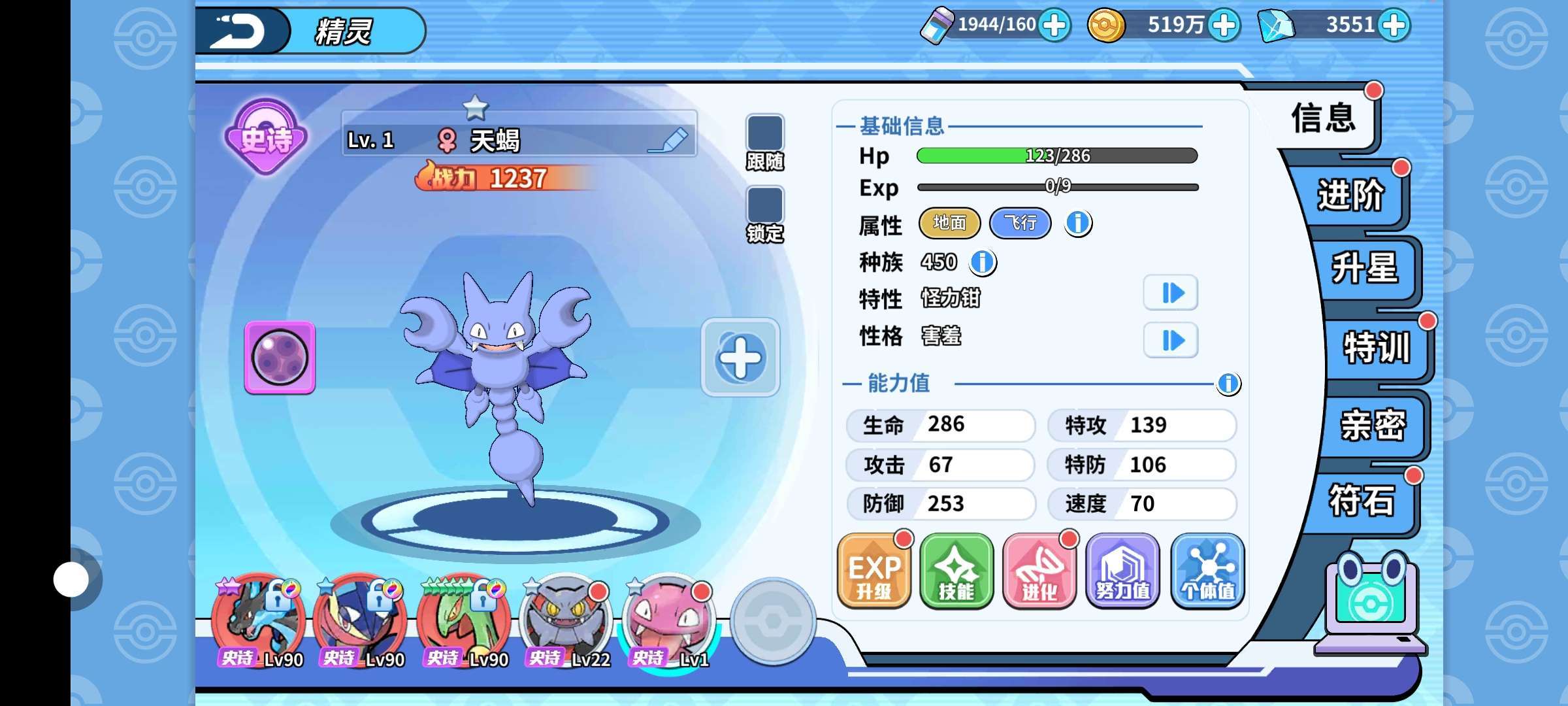 战斗吧精灵,喷火龙(等级细节)