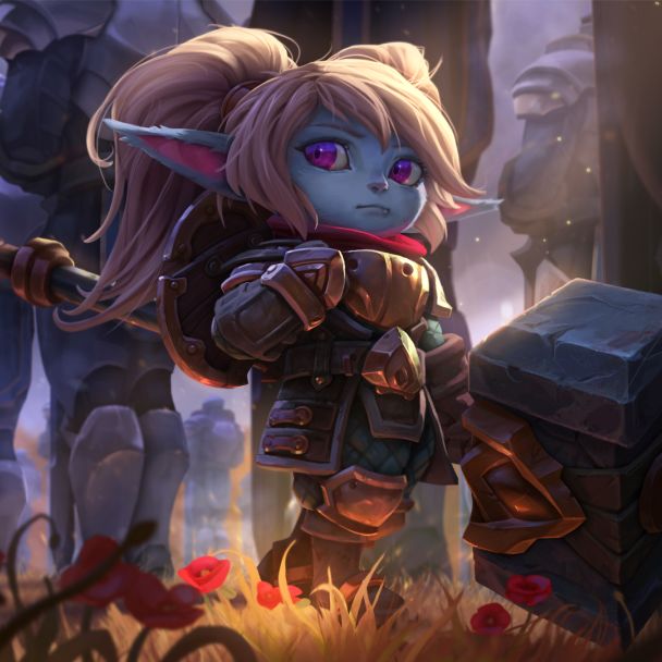 波比,坚毅的约德尔人,身携巨大圣锤,为寻找“德玛西亚英雄”而踏遍王国每一个角落。她曾与奥伦相遇相知,奥伦的言行、领导风范深深影响着她。临终前的奥伦将战锤与守护德玛西亚的希望托付给波比,虽然她具备无比坚毅的品质,但却缺乏自信与自我认知,因此她从未意识到,她自己可能就是奥伦所描述的那位绝世英雄。