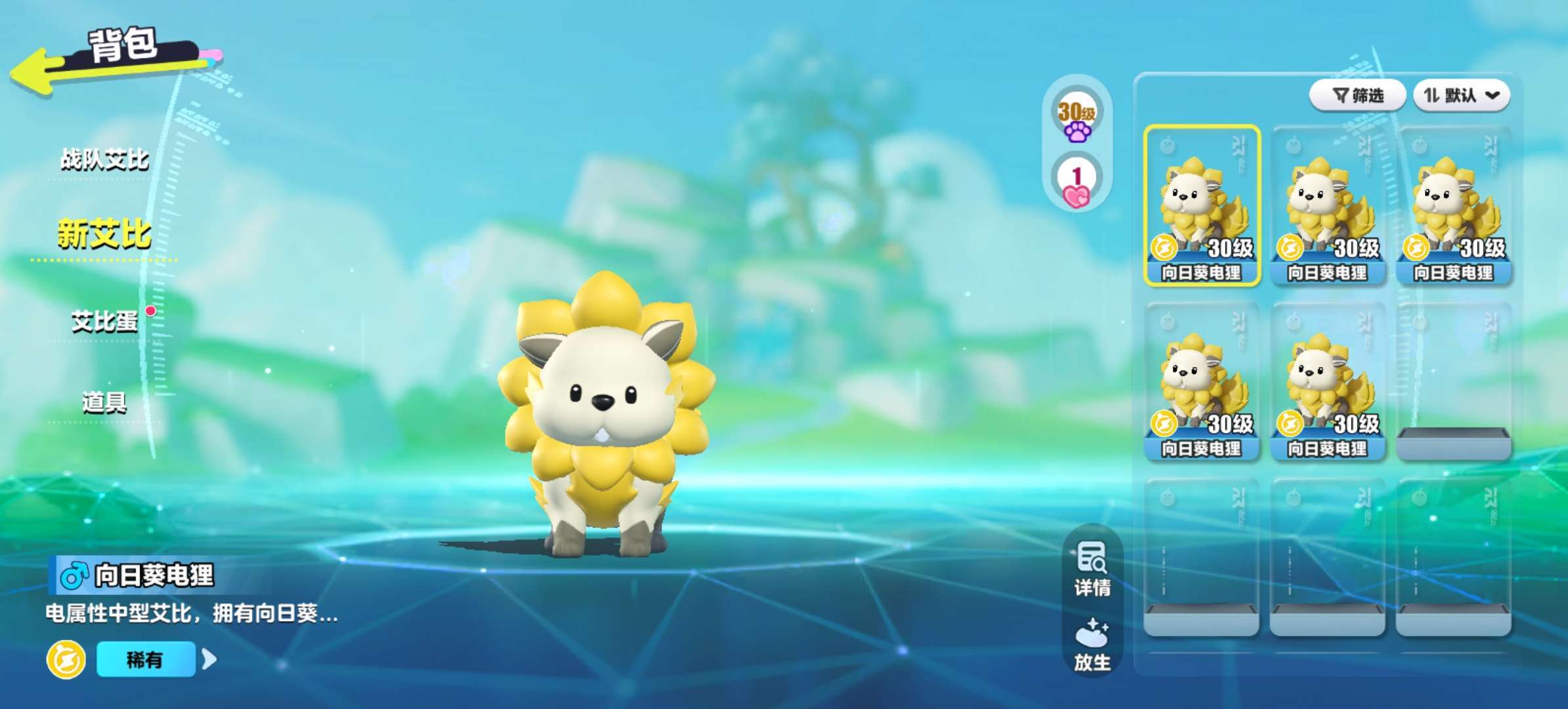 冈易,先别出新艾比了,优先提升背包数量啊,你也不看你出了多少种艾比了,这还是放了一部分在云仓库。