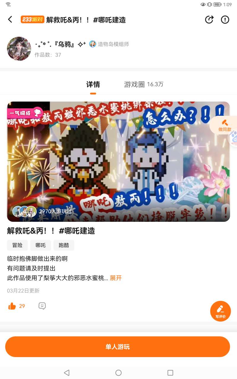 很多人说地图很难啊,但其实很简单,我看了一下,几千人的游玩量,好像是十几人通关,对大部分人来说,可能确实有点难,有没有人能跟我一样一命通关?(〜 ̄▽ ̄)〜