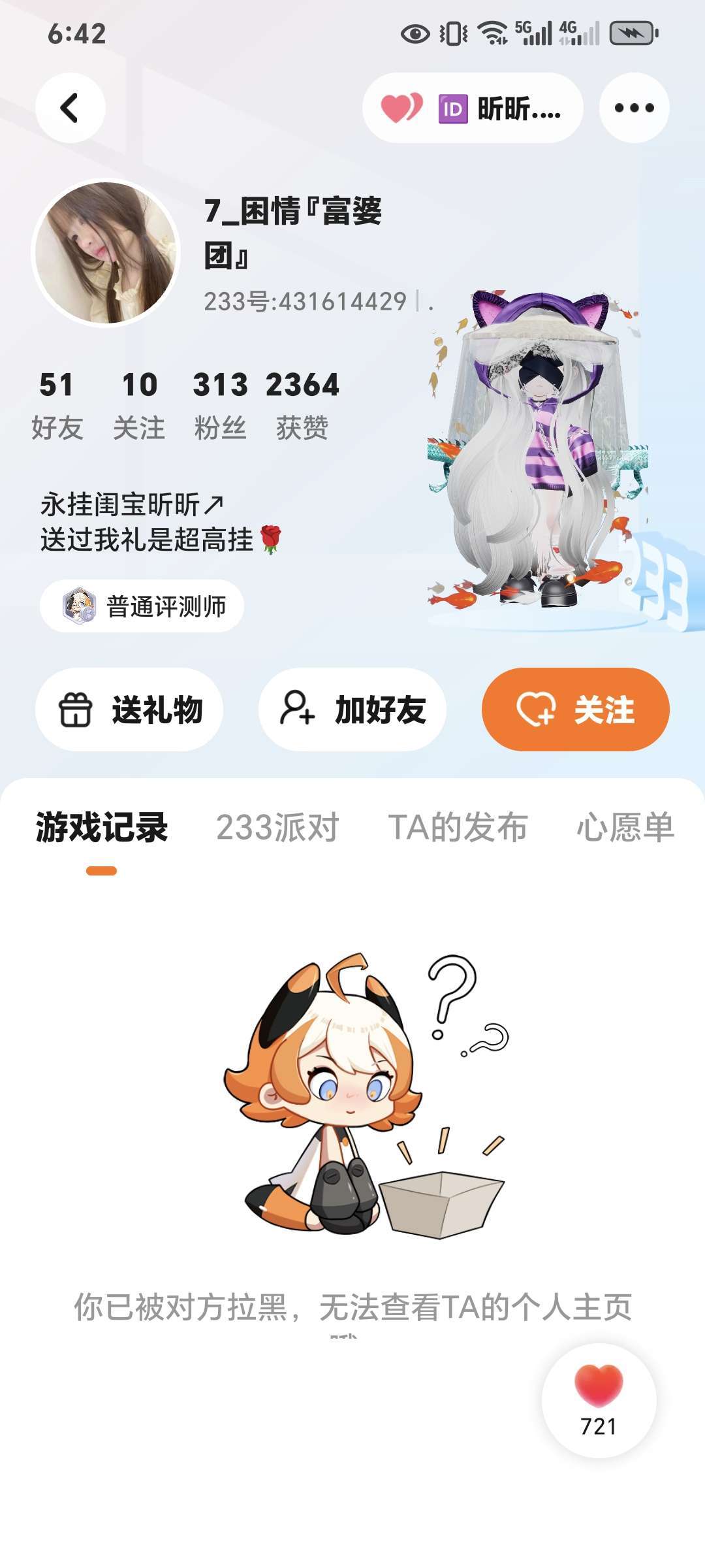 他找我要里礼物,然后我说不送她就拉黑我,真无语了,自己没实力别连累别人啊🙄🙄🙄🙄🙄