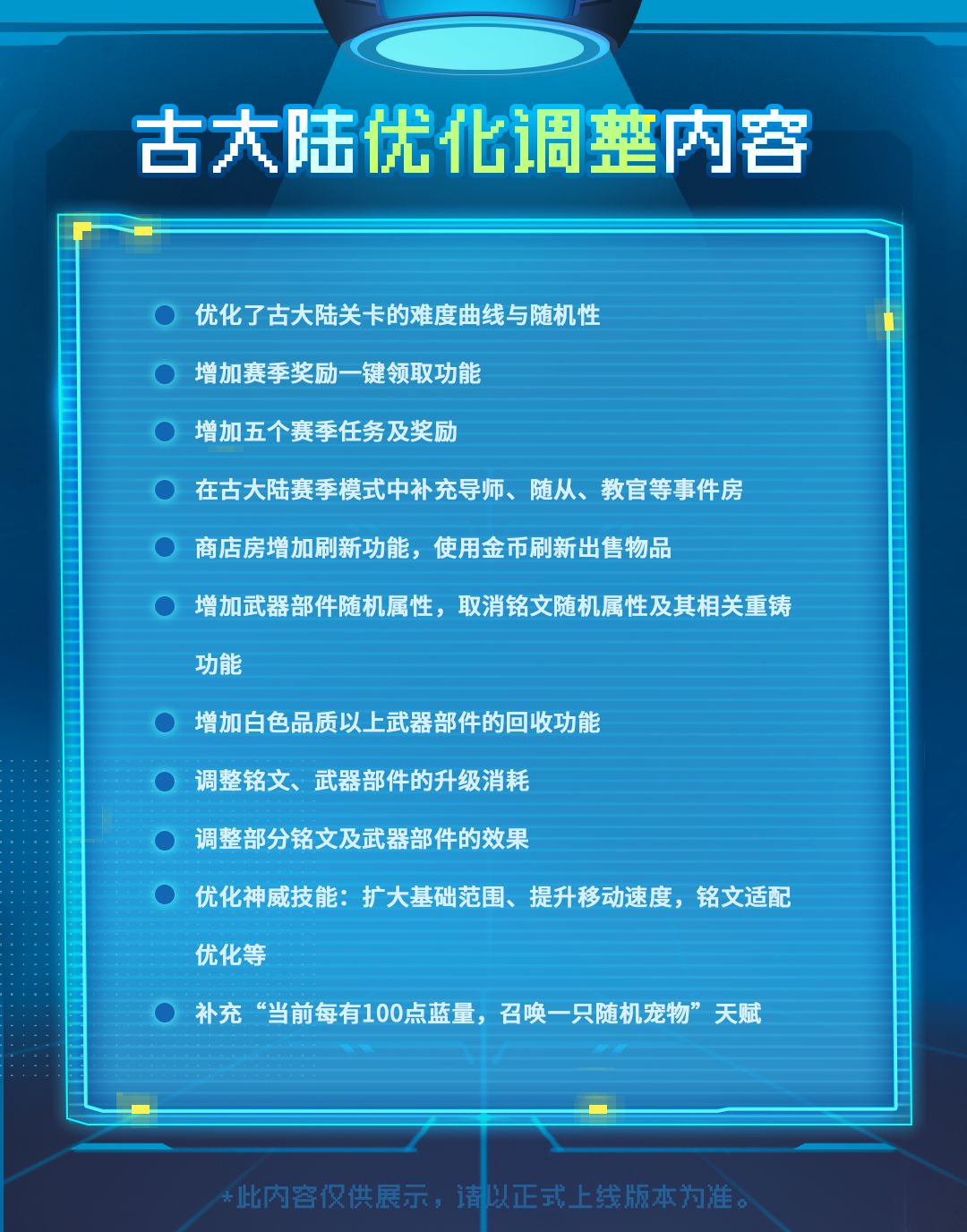 ◆◆古大陆赛季更新调整◆◆