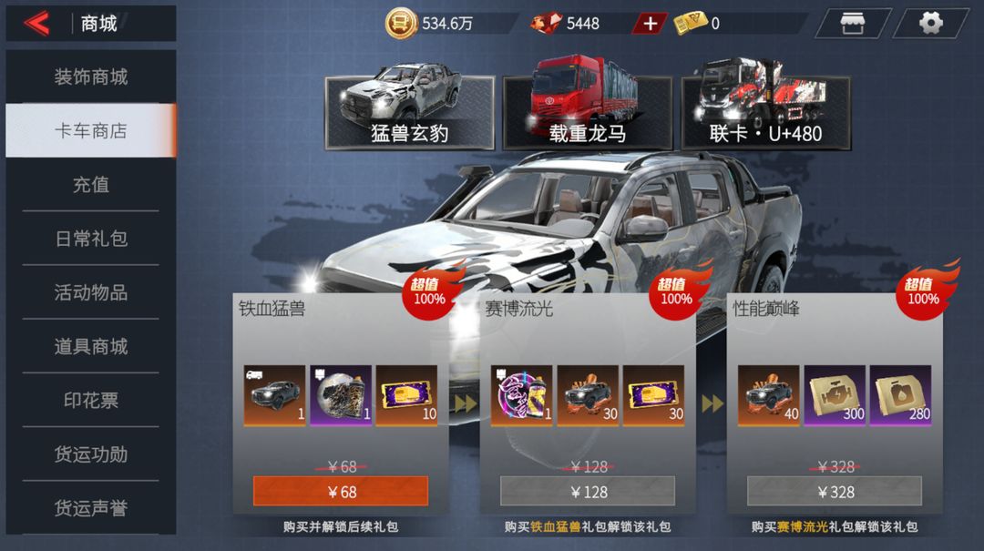 7、优化[卡车商城]直售功能,使得整体购买流程更便捷顺畅,现支持同屏查看3种礼包组合;