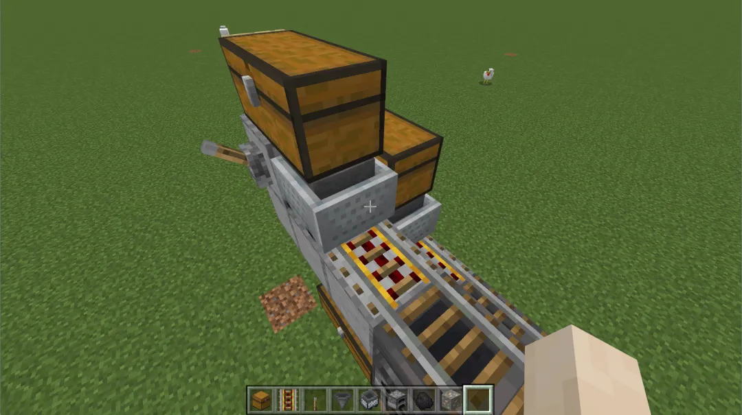 箱子的物品会自动掉落到下方漏斗矿车中