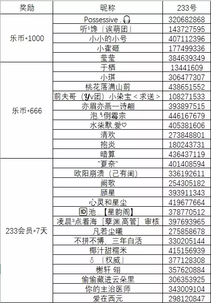 随机抽取15位送出:233会员*7天