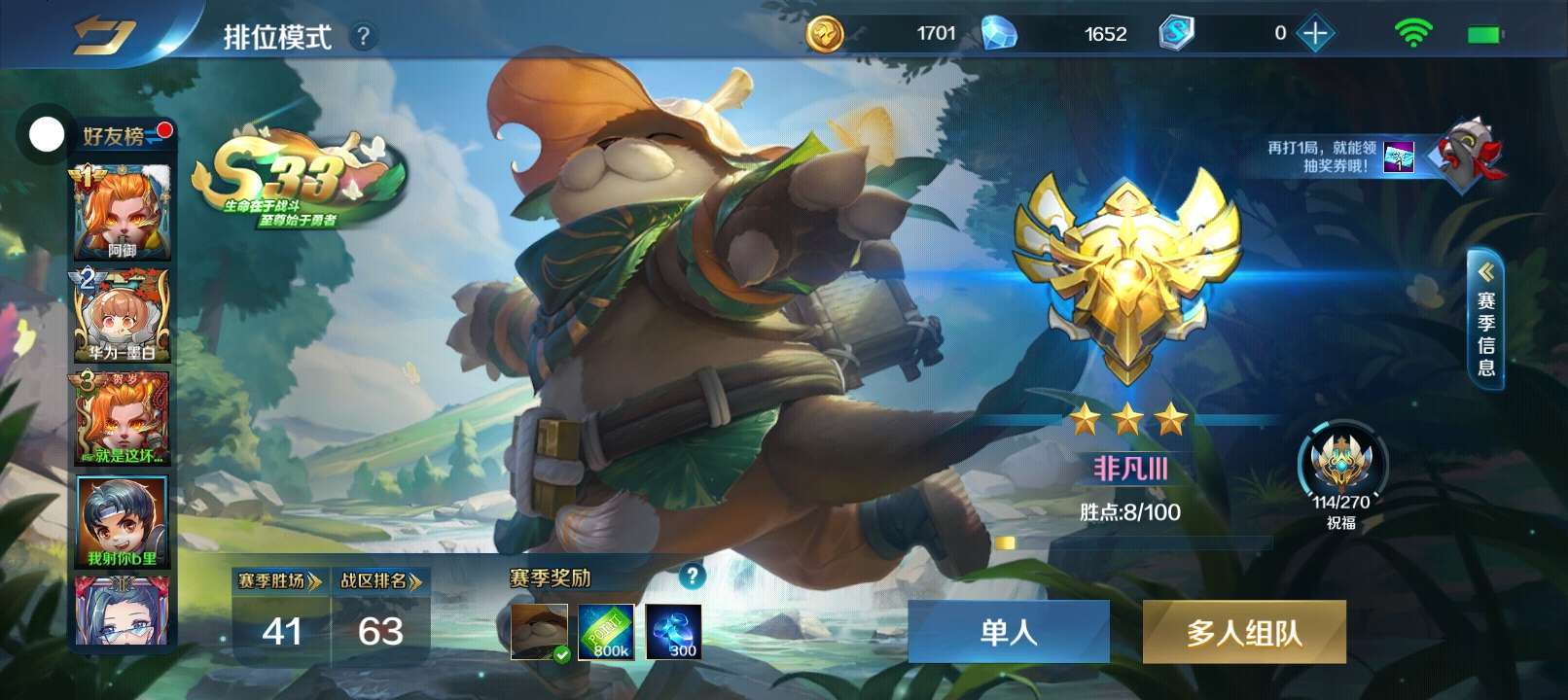 到达这个段位,下一季继续