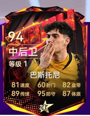 193的身高,107的身体接触,102的跳跃,搭配亚平宁堡垒特性,马特拉齐的空中防守十分强势,106的头球在角球进攻中也能制造威胁。