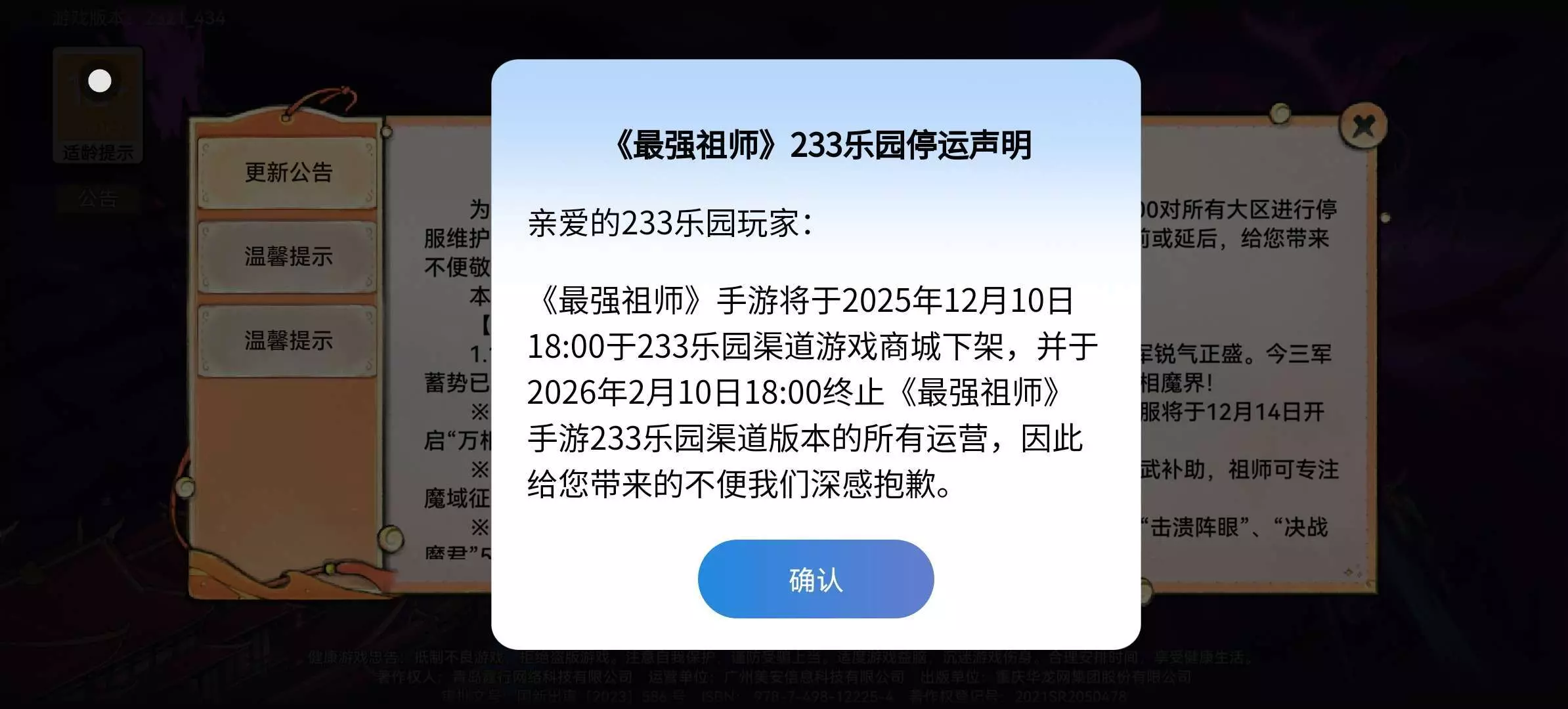 这什么意思啊?最强祖师要在233下架了吗?那我玩了这么久的游戏怎么办?