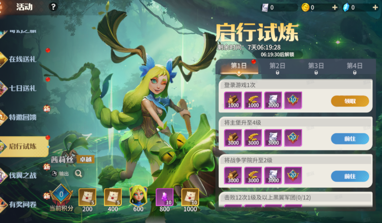 创建账号后前8天开放活动,完成活动任务获得奖励和积分。积分达到要求即可领取各种豪礼,更有卓越英雄“茜莉丝”可以获得!