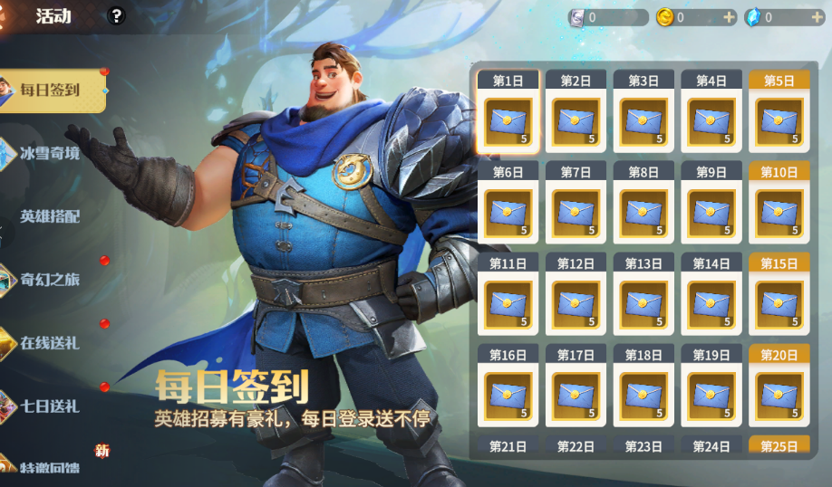 ● 每日签到即可领取英雄邀请函,每日0点刷新