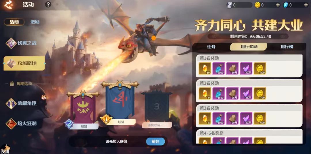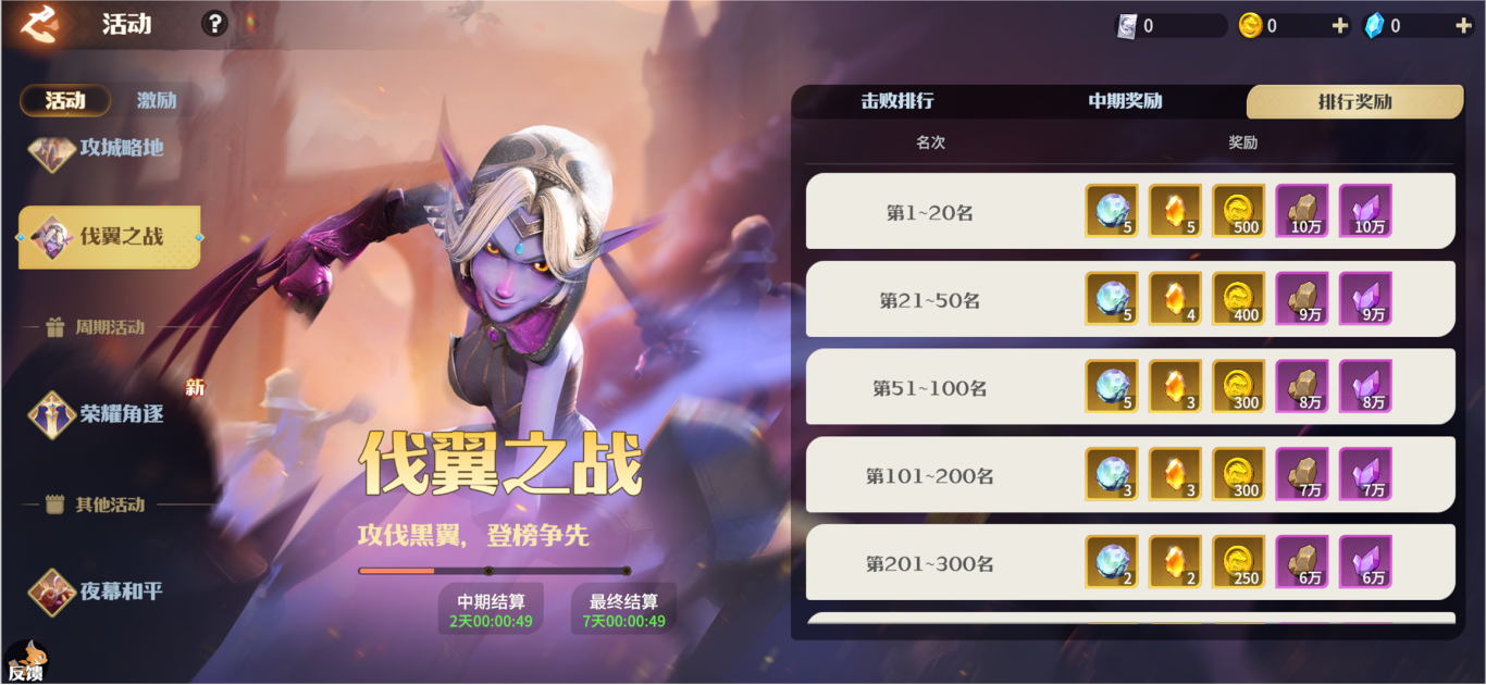 参与活动,将统计当前服务器内,所有领主讨伐黑翼军团的战绩排名,根据排名可获得卓越龙石碎块、秘焰晶核、英雄邀请函、龙币、铜矿、慧晶等奖励