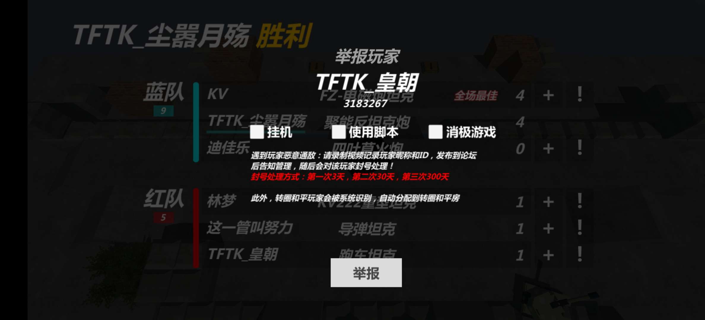 图示玩家未经TFTK战队授权,私自在自己的昵称前加上表示TFTK战队身份的前缀。这种行为侵害了我们TFTK战队的名誉!请玩家自行更改名字,或者通过一系列审核成为正式战队成员!