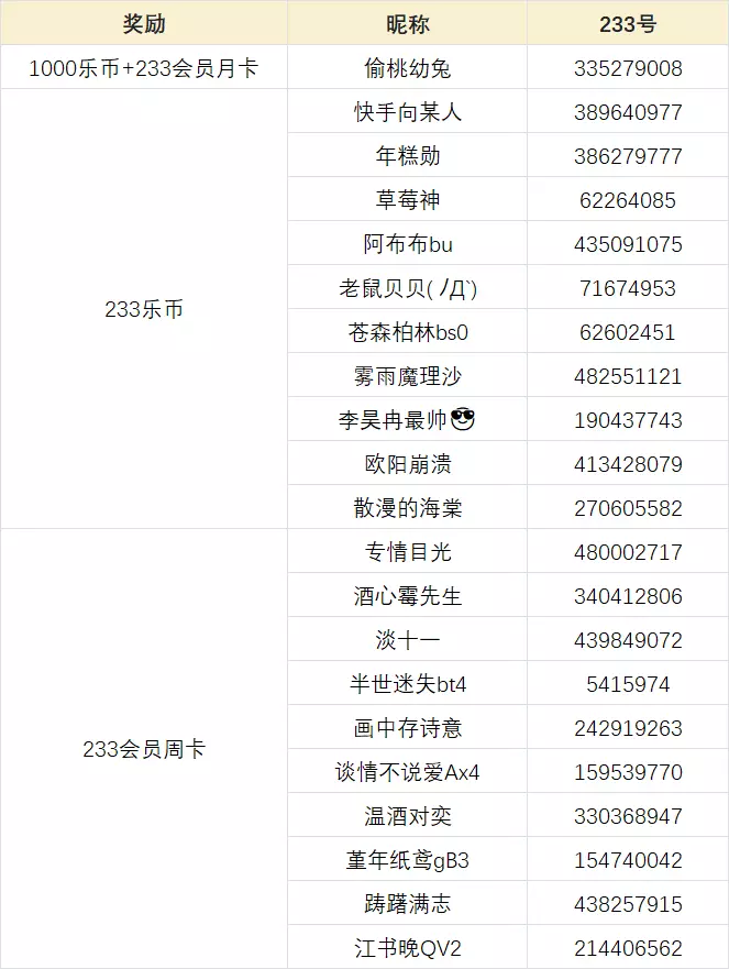 选取1名回复最用心的玩家,送出1000乐币+233会员月卡1张!