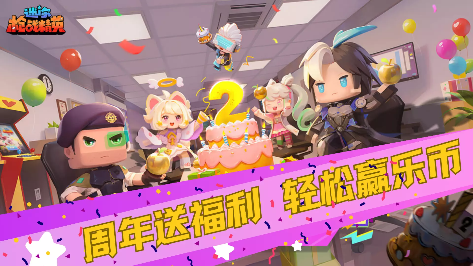 人人金苹果,神枪不错过!《迷你枪战精英》迎来2周年!新武器诸王圣启、新角色狂潮霸主加入战场,还有2周年限定专属福利等你领取!