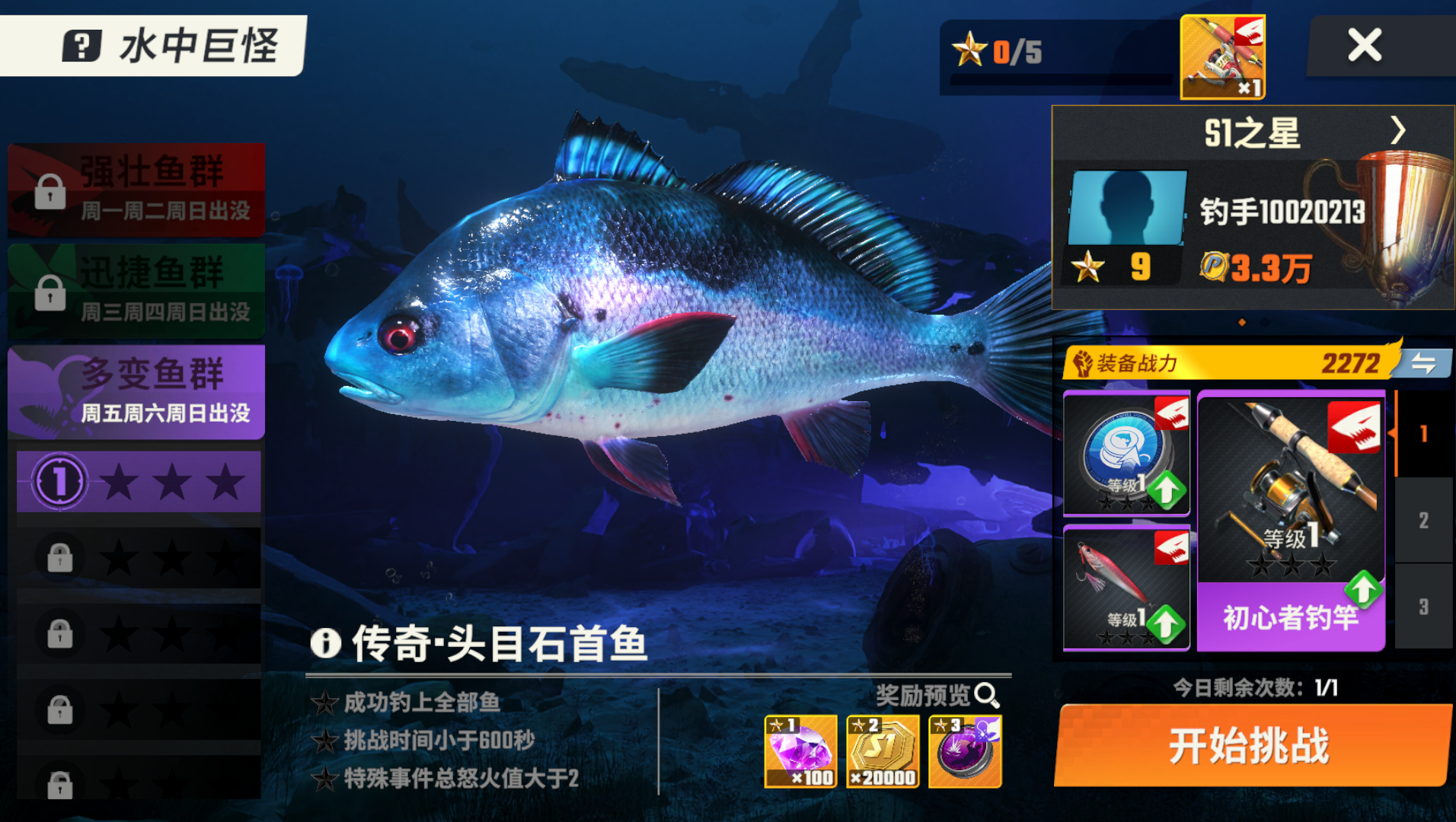 【游钓传奇锦标赛】:每日参与次数上限3次