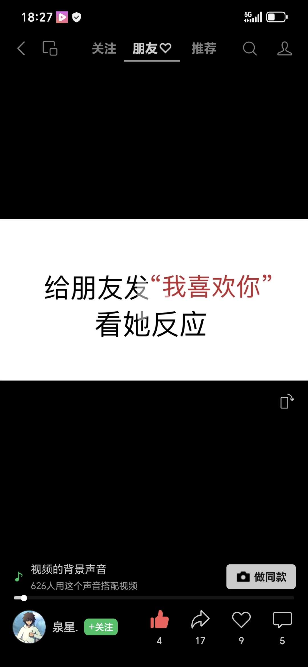 给朋友发我喜欢你,你看他反应