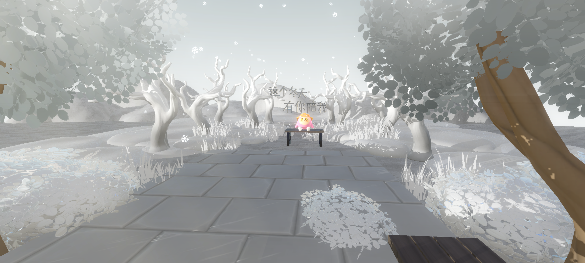 小椅子可以自己坐下,后景是超多的树,象征着冬景的寒冷,真的不要太美啦🌙