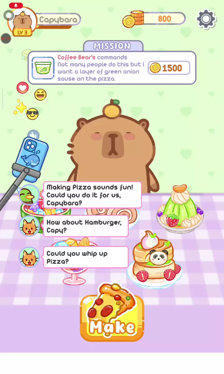 美食大师:现场吃播ASMR是一款模拟经营游戏。嘿嘿嘿,吃货们!这是你最喜欢的水豚!加入我们今天的冒险,创造有史以来最好的食物! 从前,有一只可爱的水豚,它有一个远大的梦想—成为世界上最著名的吃播直播明星!出于对美食的热爱决定与世界各地的粉丝分享他们的烹饪冒险。你准备好加入这段旅程,帮助这只水豚烹饪、进食并直播最美味的菜肴,成为吃播明星吗? 制作美味佳肴 透过各种有趣和美味的食谱释放你内心的厨师: 将波巴茶与耐嚼的波巴珍珠、奶油配料和彩色果冻混合并摇匀。 烹饪美味的披萨:涂上酱汁,撒上奶酪,并添加无尽的配料。 打造天价汉堡:堆叠面包、新鲜蔬菜、多汁肉饼和黏糊糊的起司! 添加有趣的变化,给你的粉丝带来惊喜——谁会在披萨上看到彩虹糖或辛辣口味而感到惊讶呢? 直播您的表演 打开相机,让你的水豚之星闪耀吧!穿上最令人愉悦的服装和美丽的背景,每次都抢尽风头! 举办现场课程,让观众享受美味食物时聆听舒缓 ASMR声音,包括搅拌、嘶嘶声和咀嚼声。 完成古怪的食物挑战,赢得点赞、捐款和粉丝。 购物时间到了 在餐厅周围散步,探索这里的美食天堂。发现美味的食物,如:彩虹糖、面条、辣烫、糖葫芦、牛排、河粉、寿司、薯片等等!你的创意越多,你的粉丝就越喜欢它!
