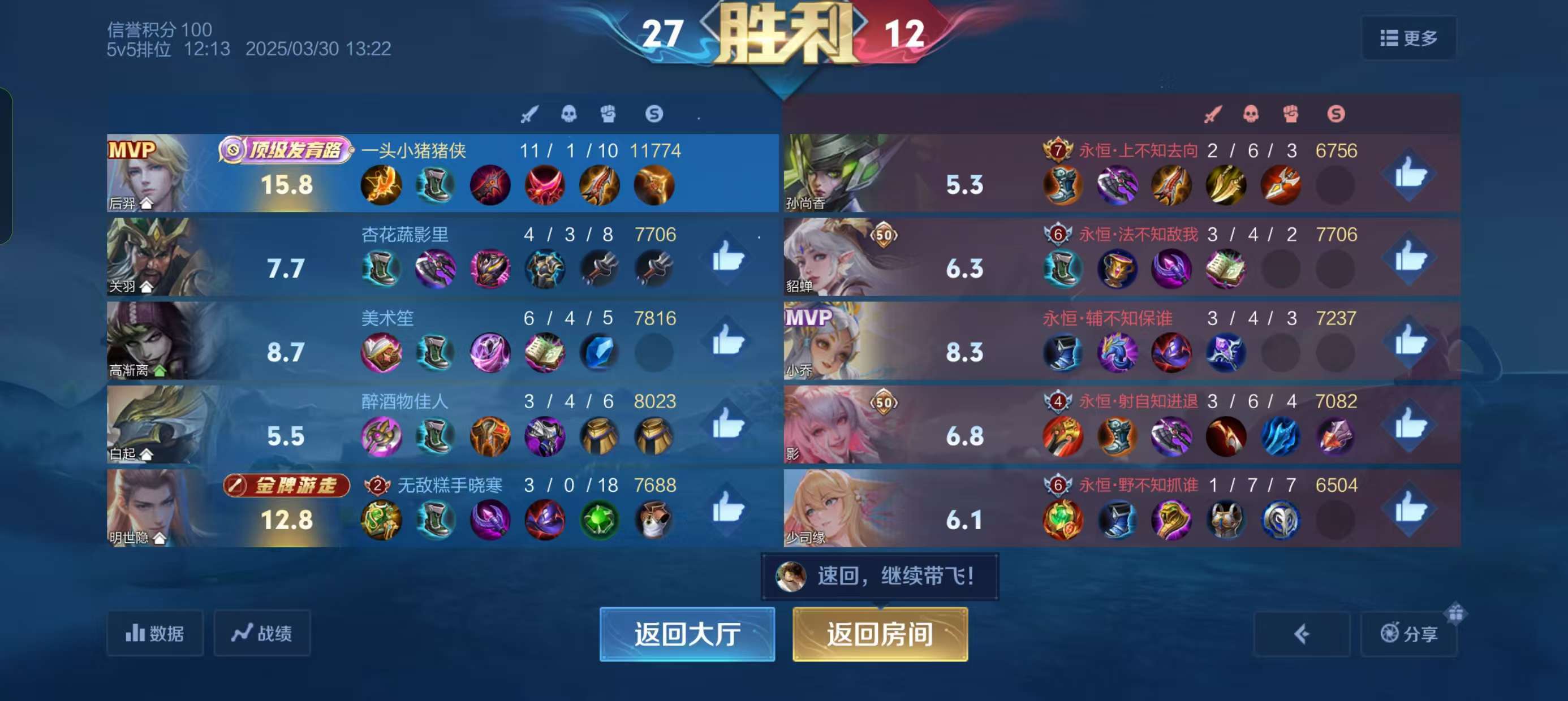 打了一晚上车队对面一把都没打赢😂