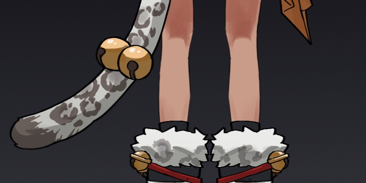 这次,我们将驺虞的特征融入到小黄的新时装中。时装整体和配饰细节以驺虞的原型雪豹为形象特征进行设计。