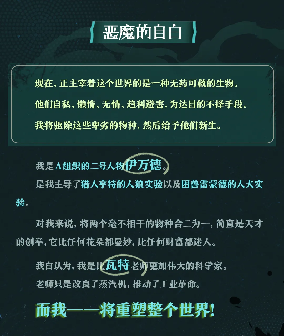 他傲慢地挥舞着足以毁灭一切的力量,却美其名曰:赐予新生。