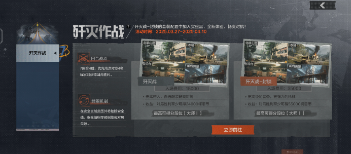 套装配置中加入实验品!活动期间,地图界面限时开放【歼灭战】入口(需达到8级),先锋可以体验畅爽回合对抗玩法!