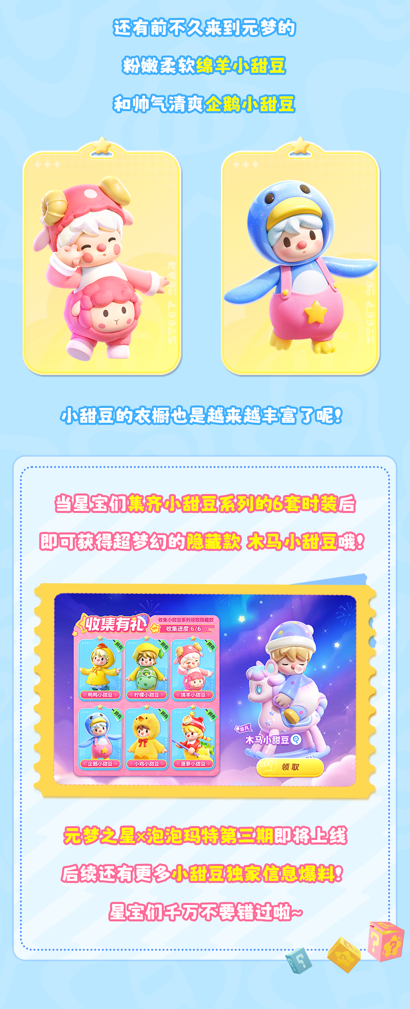 元梦之星×泡泡玛特 | 全新小甜豆上线!这波是毛绒暴击!