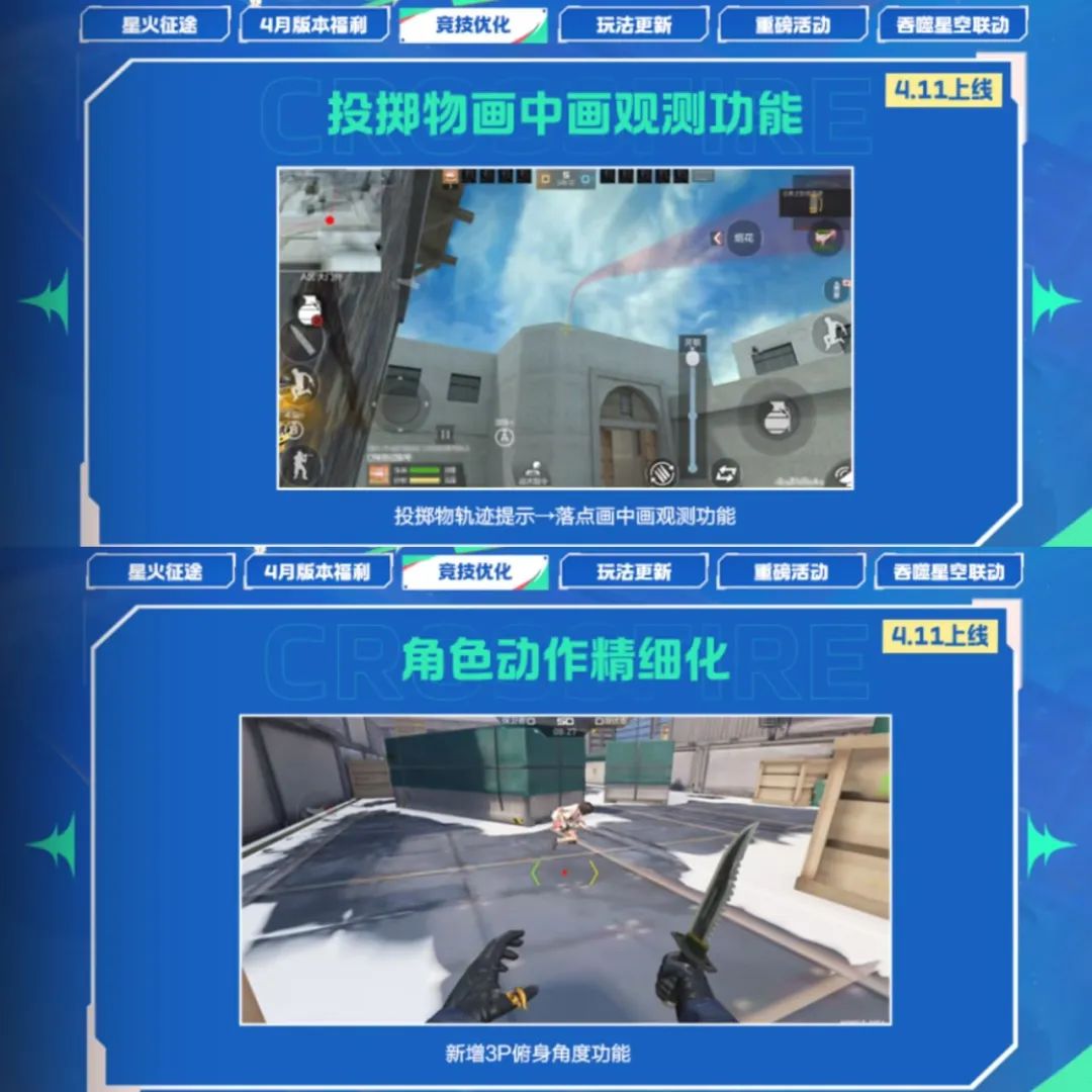 新版本将会在投掷道具时显示投掷物轨迹及落点画中画提示功能,大家再也不用担心道具丢呲了,并且角色动作也将新增3P俯身视角功能,对局技巧又增加了!