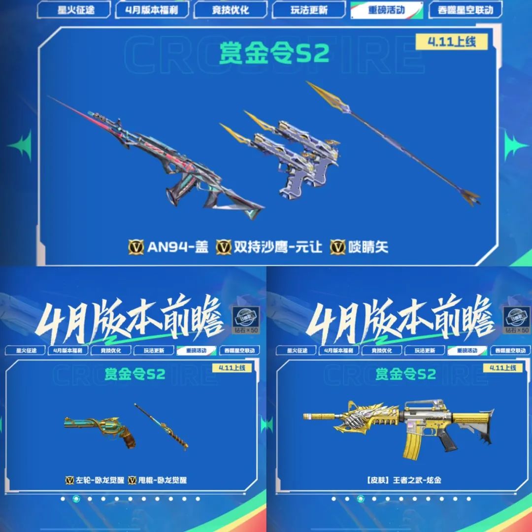 S2赏金令将上架三国名将黄盖的象征武器——AN94-盖,元让套装也将由双持沙鹰-元让和啖睛矢补全,上线左轮-卧龙觉醒和甩棍-卧龙觉醒,大奖炫金皮肤自选卡新增【皮肤】王者之武-炫金!