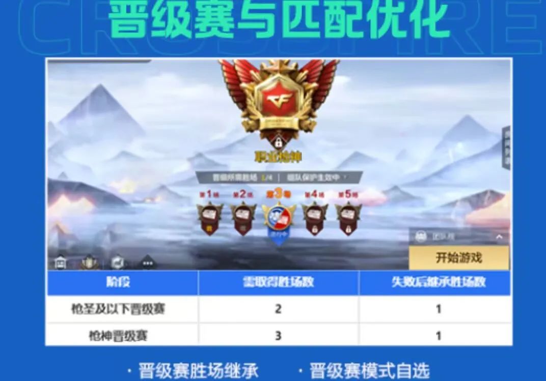 职业排位晋级赛中第三场将支持团队战、爆破战二选一,除此之外枪神及以下将开启晋级赛胜场继承机制。同时匹配效率和质量也得到提升,预计在4月版更后匹配时间和分差将会大幅减少。
