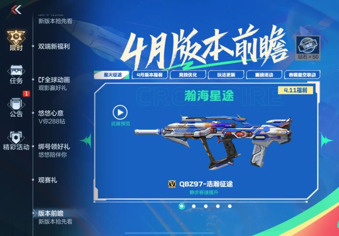 时隔许久,QBZ97家族也是迎来了新成员,可以白嫖的英雄级武器QBZ97-浩瀚征途,这把武器拥有MK47-仁德同款静步移动速度提升技能,助你在残局处理时快人一步!