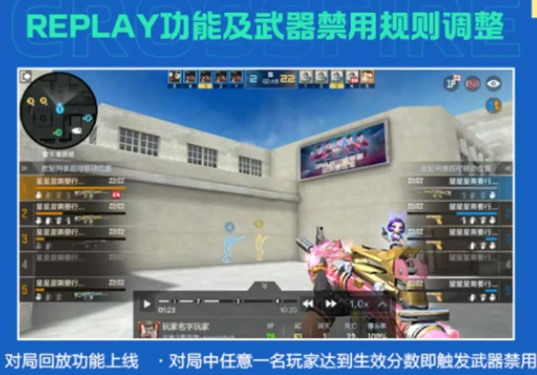 新版本即将上线对局回放功能,小伙伴们再也不用担心自己精彩时刻没录上啦!武器禁用规则升级,对局中任意一名玩家达到生效分数即触发武器禁用!