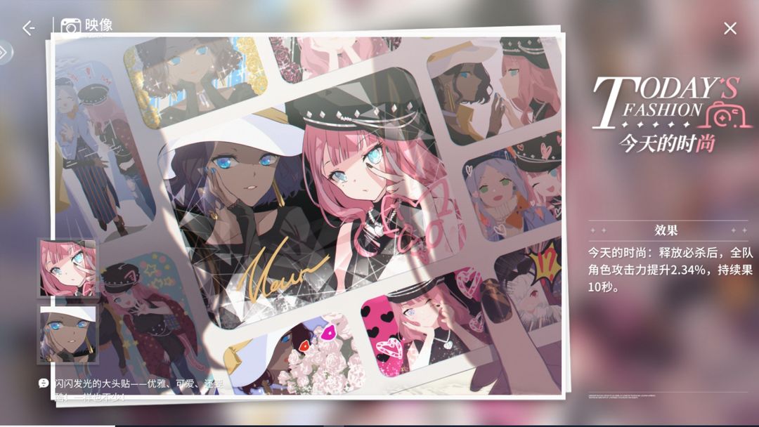 初级效果:释放必杀后,全队角色攻击力提升2.34%,持续果10秒。