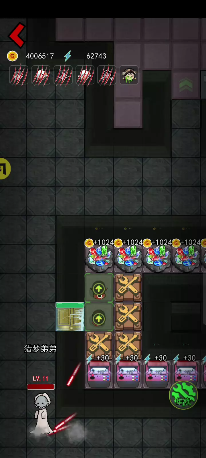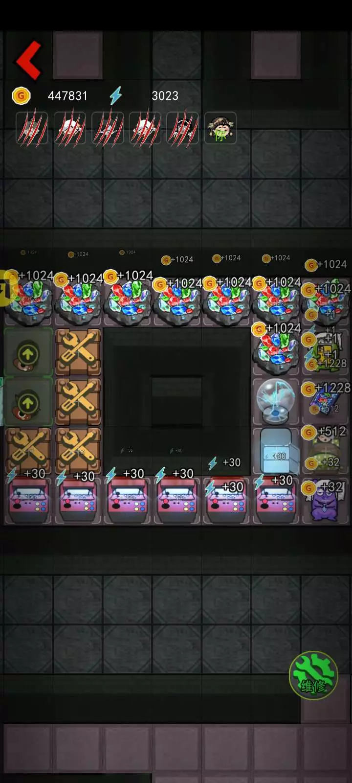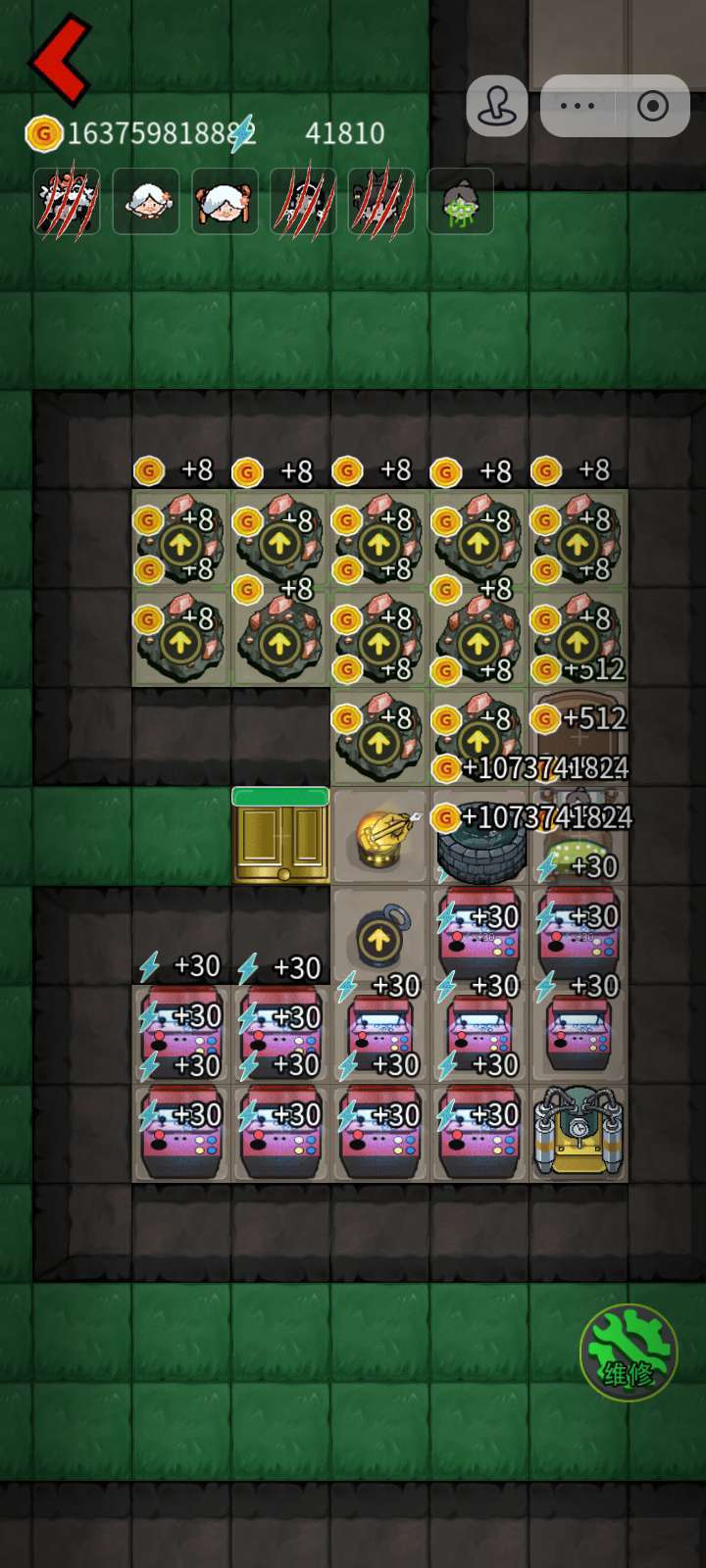 金色ATM机配上满级加特林和极速攻击技能 和超多炮台直接每秒生产上千万多的金币