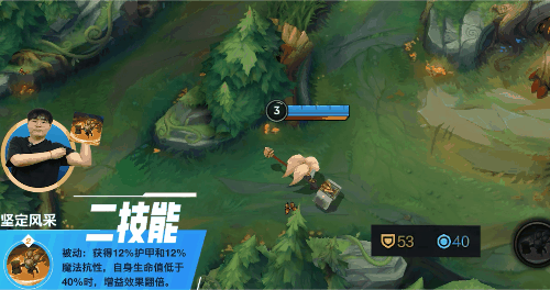 实战中,我们既可以利用被动的远程攻击搭配符文:不灭之握换血消耗,不停折磨对方,也可以在团战时不断捡起圆盾,配合小技能的控制和双抗加成,化身残局概念神。
