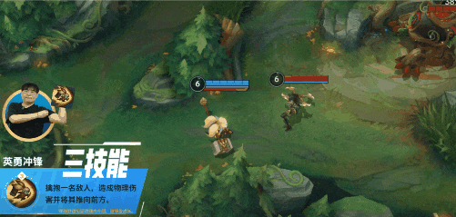 对线期可以在有被动技能时开启W(2)技能,利用加速效果将对手E(3)技能推墙,眩晕的同时打出Q(1)技能的两段伤害,最后补普攻触发被动护盾,完成一波完美换血。