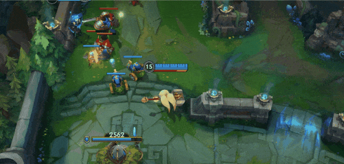实战中我们可以开启W(2)技能,限制敌方刺客切入,也可以阻止敌方残血的位移逃生。