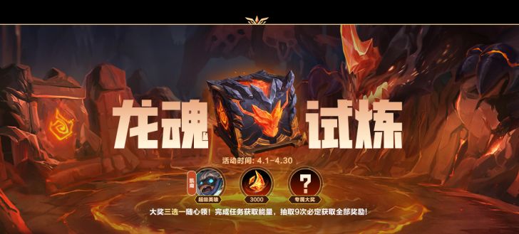 龙魂试炼阶段一今日开启!即日起,截止至4月30日,召唤师完成对应阶段任务,即可实现超级英雄 凯南、龙魂水晶*3000及专属大奖随心三选一!