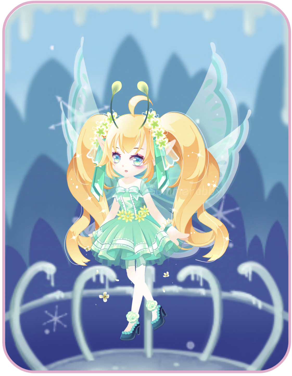 翅膀原来用的3月年费,巴特超出框框了无奈更换( )而且换装过程中还发现绿牡丹和童梦奇缘(是这个名字吗?蔚月吹雪之后的一个美仙秀的)也很配,改天也可以摸摸~