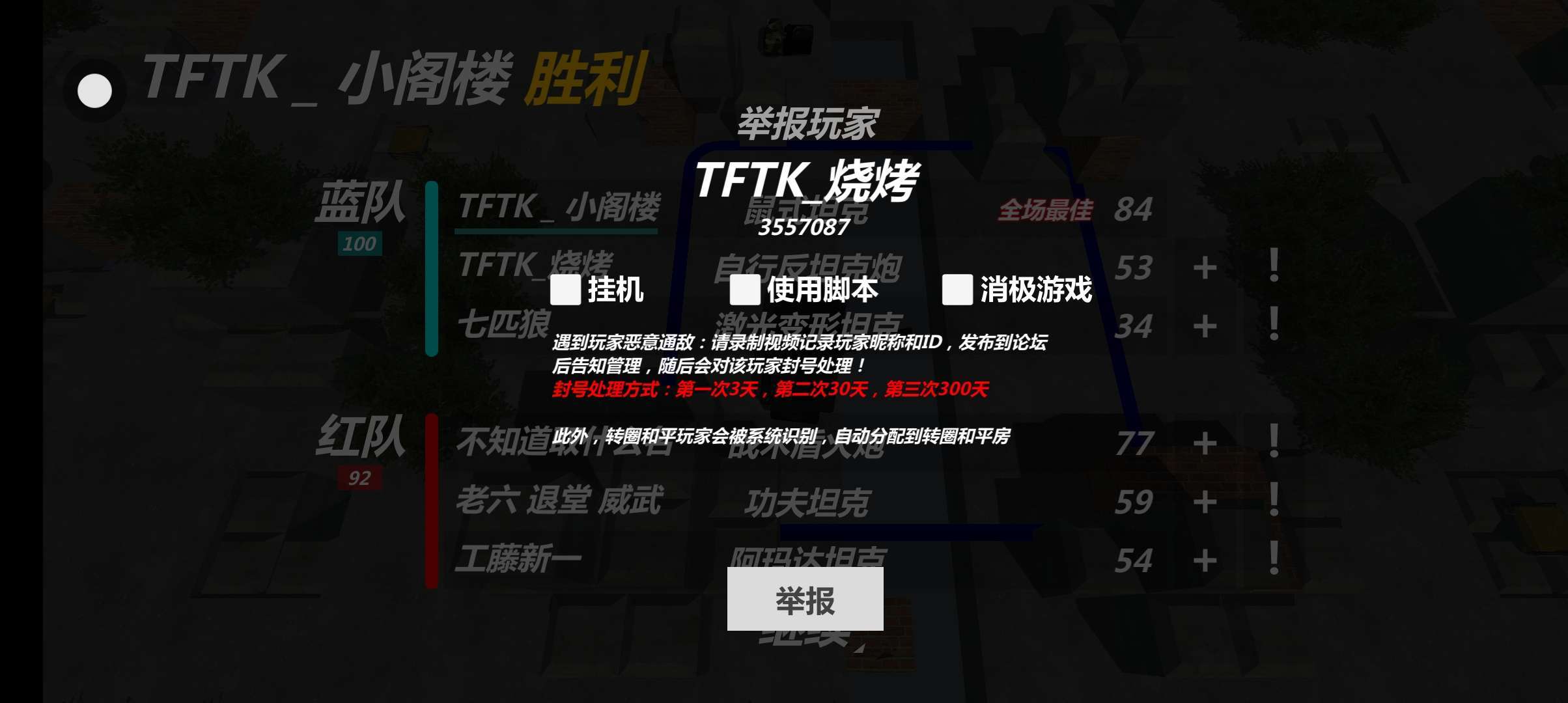 图示玩家未经TFTK战队授权,私自在自己的昵称前加上表示TFTK战队身份前缀。这种行为侵害了我们TFTK战队的名誉!请玩家自行更改名字,或者通过一系列审核成为正式战队成员!
