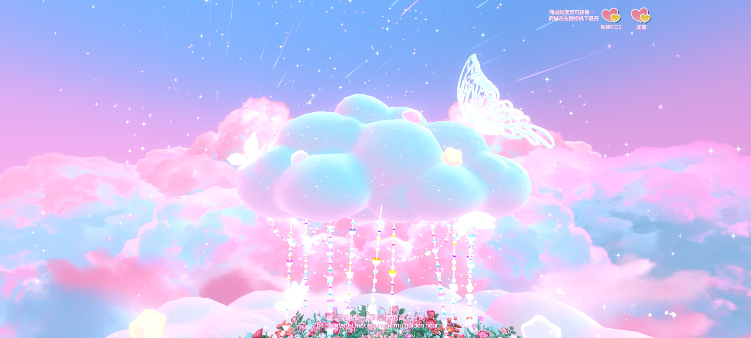 渐变色的云朵a,上边还有镂空的蝴蝶,又高级又神秘的感觉,感觉连背景板的天空都变得高级了呢,流星也超有存在感,整体真是绝美呀(っ*´∀`*)っ🦋